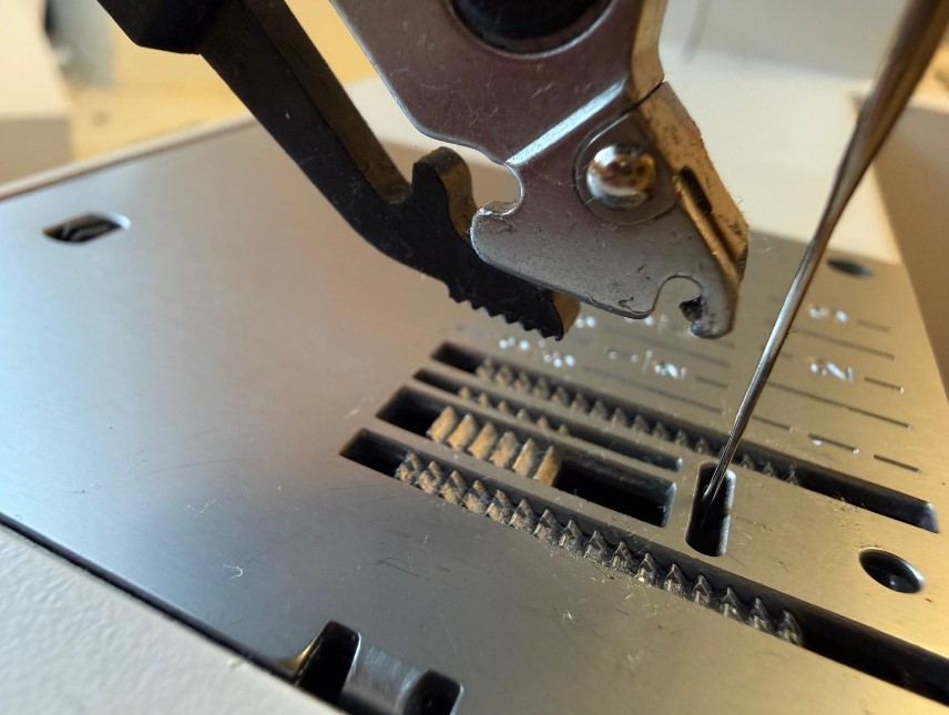 Alte Ölreste, Fusseln und Staub blockieren die Bewegung. Dann arbeitet die Maschine gegen Widerstand. Diese zusätzliche Kraft belastet die Nadel stark.